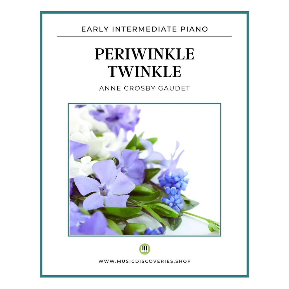 Our next pair of pieces moves into early intermediate territory. I love the name of this first piece, Periwinkle Twinkle. It has a jazzy flavor with syncopated rhythms and a buoyant character.